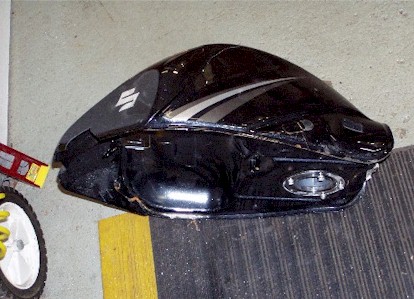 2007 GSXR tank. What you can't see in this picture is the top which is severely dented. |