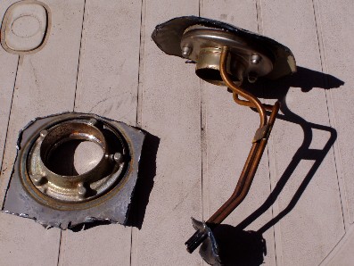 Using only the finest surgical tools - in this case a 4 1/2 inch angle grinder, the fuel pump flange and filler cap were skillfully removed. |