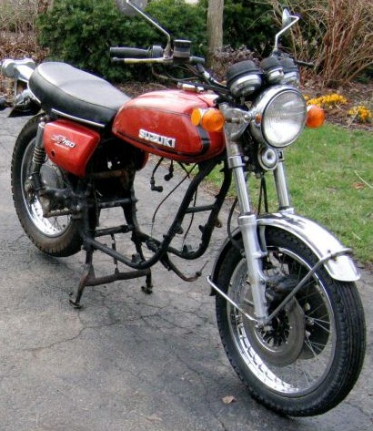 The front end of a GT750 is quite nice, in a dated sort of way. The large instruments and chrome headlight look very cafe racer like and naked fork legs mimic Ceriani forks of the sixties. Not a bad start, but not the look we were after. I poured over dozens of photographs in books and on the web looking for the perfect Flat Track look, and surprise surprise it didn't exist. There are a couple of nice front numberplates on some, but they all make those skinny forks look spindly and weedy. I finally realized that the look I was after was a cross between the simplicity of a Triumph twin, but in a more updated style, and a German or Dutch Streetfighter with that sleek, smooth look, but without the extremely wide USD forks. So the design intent was simple as an old Triumph TT bike and as sleek as a modern Streetfighter. Not much to ask. |