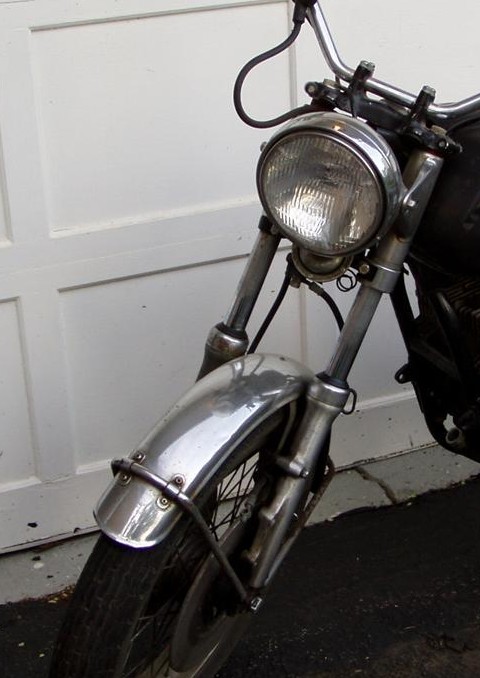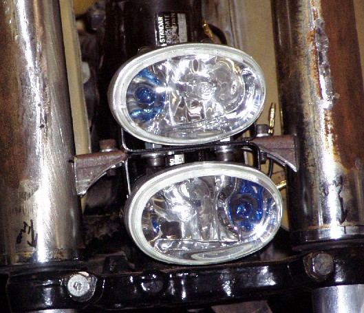 All it needs now is a lick of paint and it will look clean and sharp. When the bike is together, if I don't like that look, it will be easy to change to dual side by side lamps or to revert to stock headlamp ears and that large chrome headlight. No change so far is completely irreversible. Au contraire mon amie, it will be a simple task to change the look or even to revert to stock.