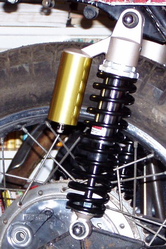 Really, though, the stock shocks are old and ugly. I have nothing against old or even plain, but they just are not up to the task of suspending this beauty. Something with a little more flair and presence was needed. the old shocks measure up at 295mm between eyes and the ends are both nominally 12mm. Another quick visit to Mike's XS web store and there are many shocks to choose from and all really cheap. The ones I chose for this project are 320mm long and have remove reservoirs which looks tough, like a cheaper copy of Ohlins but at 10% of the cost. Let's hope that they work better than 10%. Of course the top eye was too large and the lower one was too small. The top was easy. I pressed out the bush and sleeve using a vice suitable sized socket. Then I pressed out a bush from the stock shocks which was in perfect condition, and lubed it and pressed into the new shocks. The lower mount was a parallel wall isolastic type bush so I carefully drilled out the bush from 10mm to 12mm. If it overheats, the rubber bushes will go up in smoke, so it took a while and lots of cooling.