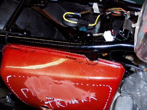 I was not planning on using teh stock air filter box, but removing it, left and unsightly gap. The side covers look as if the front edges should either be under the rear of the tank of should line up with the rear edge of the tank.